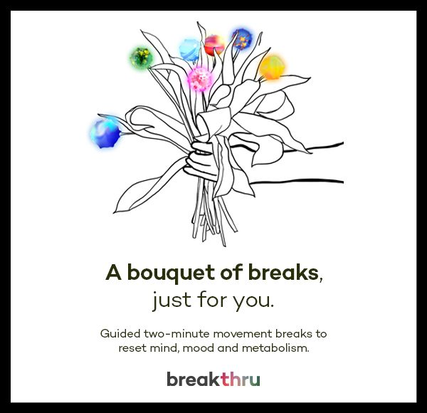 With that in mind, we created Breakthru Bouquets. A new way to gift micro moments of movement, breath, and beauty into the flow of someone’s day. Sending a Bouquet is a simple, but meaningful, way to show gratitude, offer encouragement, celebrate a win, or simply to remind your team that taking care of themselves is all part of doing great work.